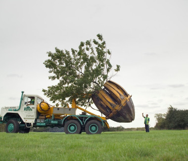 For Ruskins, the process of relocating a mature hedge begins with a precise assessment of its species, age and overall health to determine the feasibility of the move. Once a hedge is selected, a specialist team carefully prepares it for relocation. Using state-of-the-art machinery, the hedge's root system is expertly removed from the ground in a large, intact root ball. This root ball is then carefully encapsulated in a protective cage or wrapping to maintain its integrity, ensuring the root structure remains moist and stable during the entire process, protecting it from damage. This critical initial stage is precisely engineered to minimise stress on the living hedge and maximise its chances of successful re-establishment.
